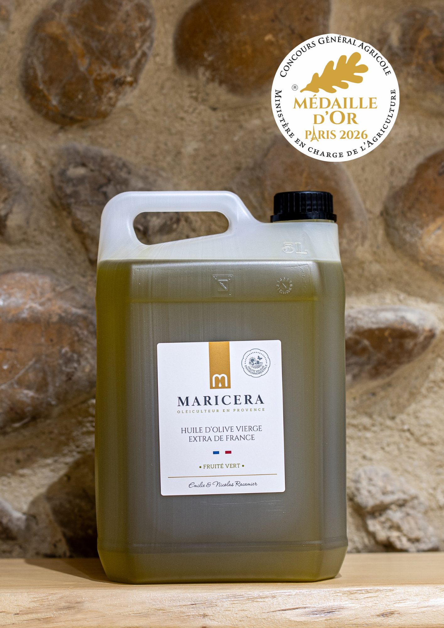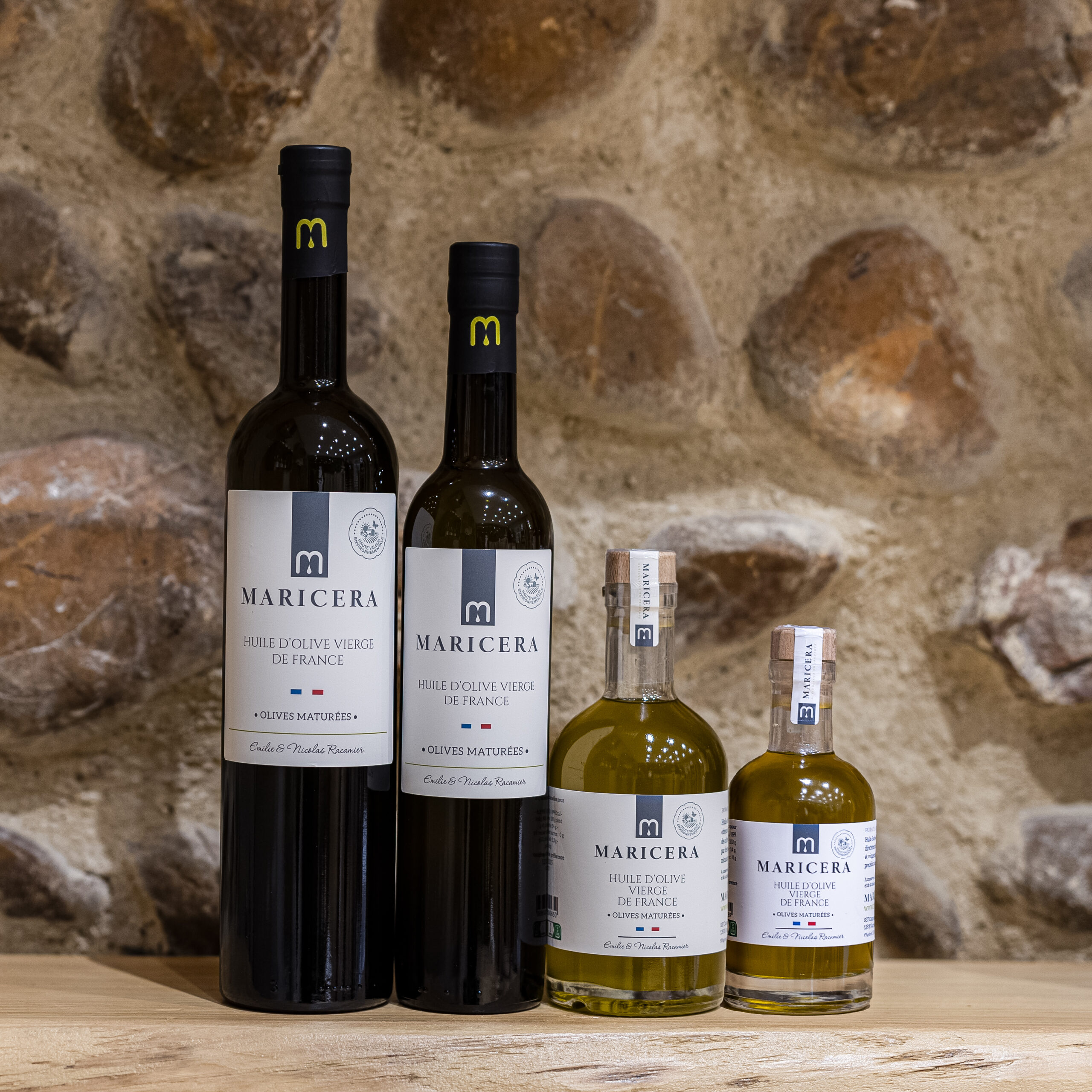 Huile tout en douceur, sans amertume ni ardence avec des saveurs d’olives mûres, sous-bois et fruit rouge.